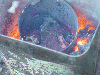 As Mr. Terry McCreary observed, a vacuum cleaner blows too hard for such a small foundry. Even my cheap little shopvac would quickly burn up both steel cans, if it did not blow the charcoal out of the can and onto the ground. But I know a trick. Air is cheap. I will waste some of it. A lot of it. I have two pieces of iron pipe. One fits the vacuum hose nicely, and lays on the ground, pointed at the inlet pipe for the foundry. I simply move the pipes closer together for more air, or farther apart for less. The pipes are heavy enough that they tend to stay put. By judicious use of this technique, the foundry can last through several firings.
