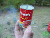 Note that there is a hole punched at the top of the can. This is so I can hook the can with a coat-hanger wire and lift it from the fire.