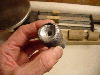 Over this recent Winter Holiday it struck me - why not cast rocket nozzles from aluminum? Well, there are always reasons why not but I prefer to learn them first-hand, provided that life, limb, or personal freedom are not threatened. I tried a crude version of lost-wax casting, molding a cylinder of paraffin to the shape of a nozzle, embedding it in plaster of Paris, melting out the wax, drying it for several days, and pouring the cavity full of melted aluminum cans. The result was really ugly coming out of the mold, but cleaned up nicely at the grinding wheel. It has endured three 4x4 launches with KN/sucrose, suffering some degree of erosion at each firing. It is in a tube again now, awaiting its fourth and perhaps final flight before recasting.