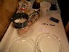 Pans at 40 minutes, and about done. The color of the mixture has subtly changed from bluish-white to light ivory. This does not show in the photos. Again note that the amber color of the rear-left pan is an illusion - they are both the same color, more like the front-right pan..